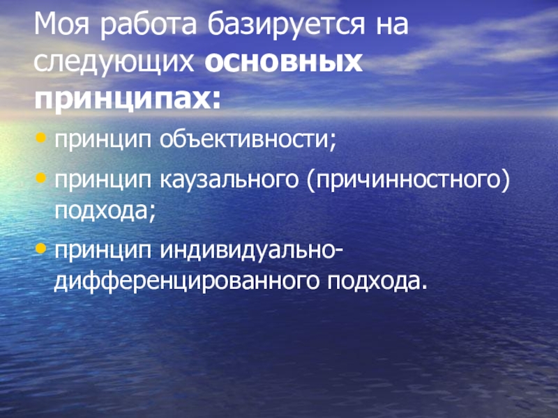 Слайд 8Моя работа базируется на следующих основных принципах:
