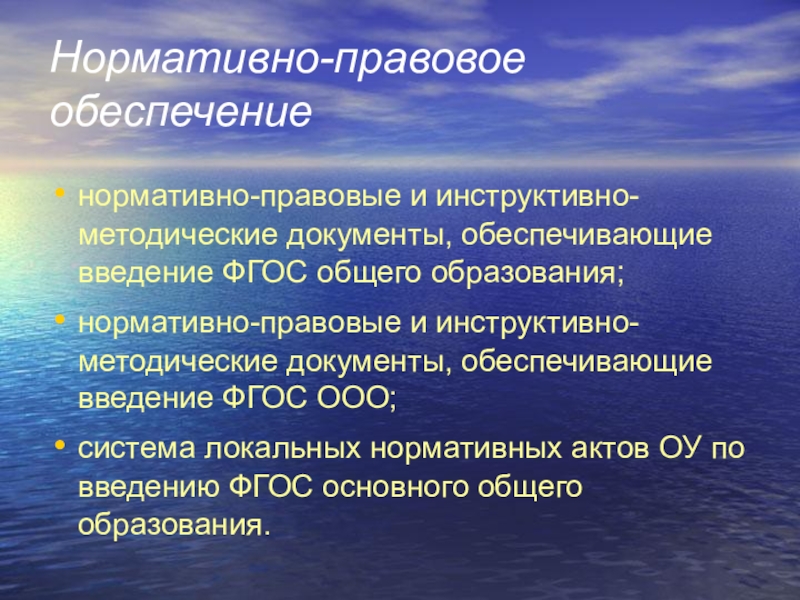нормативно-правовые и инструктивно-методические документы, обеспечивающие введение ФГОС общего образования;