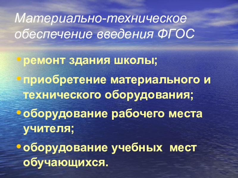 Слайд 35Материально-техническое обеспечение введения ФГОС
