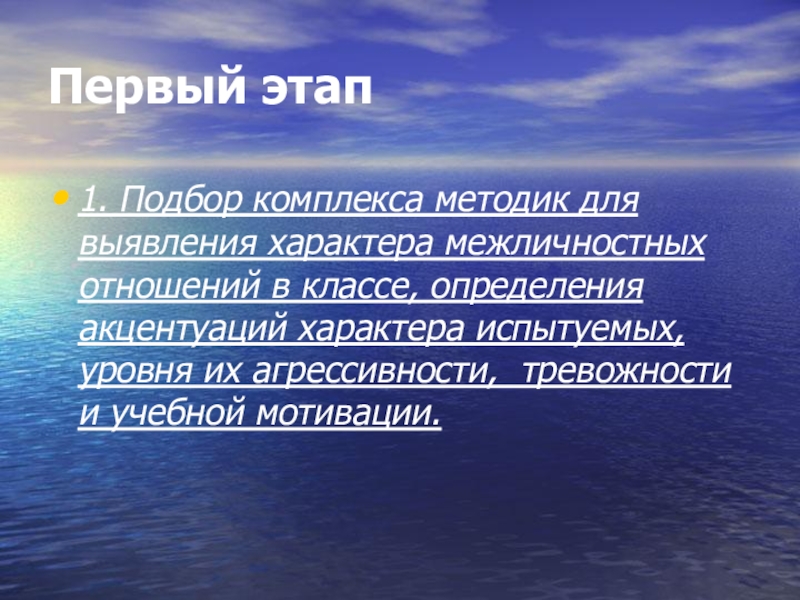 классе, определения акцентуаций характера испытуемых, уровня их агрессивности, тревожности и учебной мотивации.
