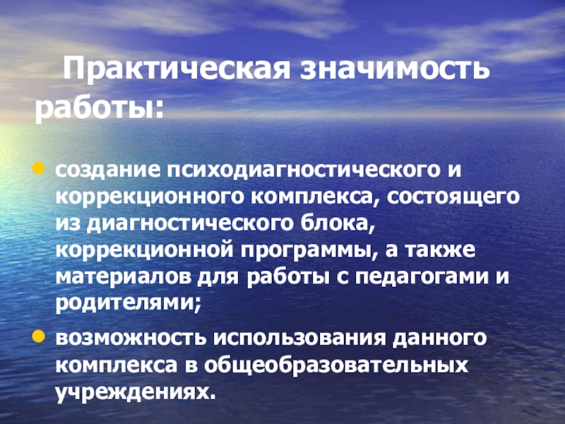 создание психодиагностического и коррекционного комплекса, состоящего из диагностического блока,