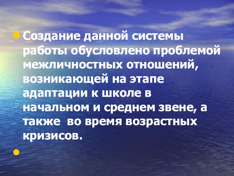 Создание данной системы работы обусловлено проблемой межличностных отношений, возникающей на этапе