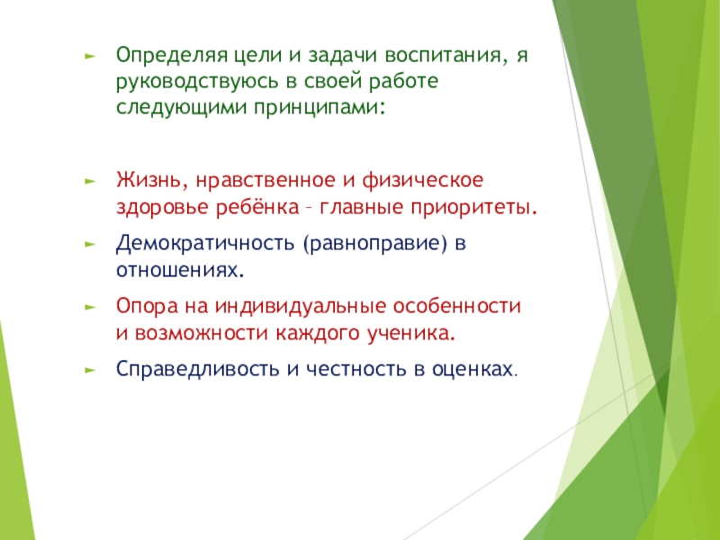 Слайд 5Определяя цели и задачи воспитания, я руководствуюсь в своей работе следующими
