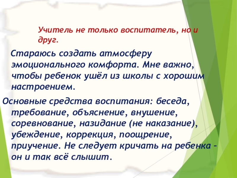 эмоционального комфорта. Мне важно, чтобы ребенок ушёл из школы с хорошим настроением.