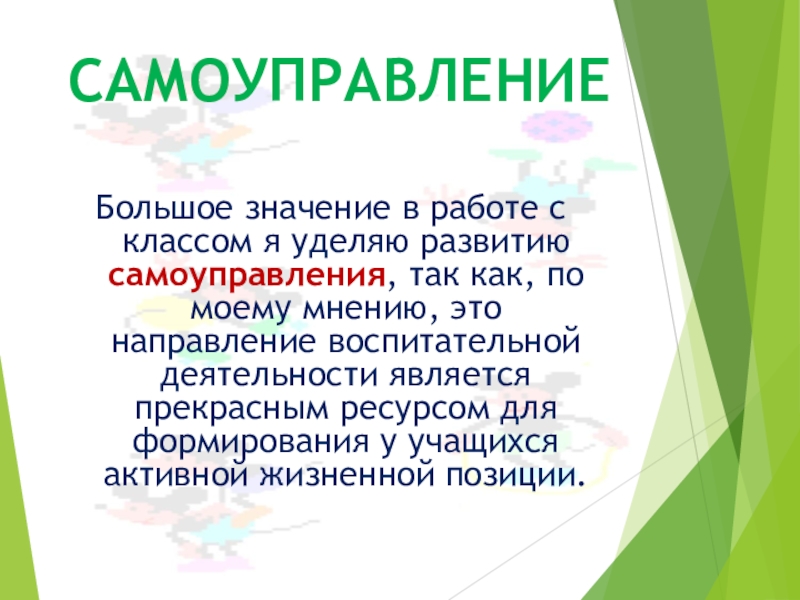 Большое значение в работе с классом я уделяю развитию самоуправления, так