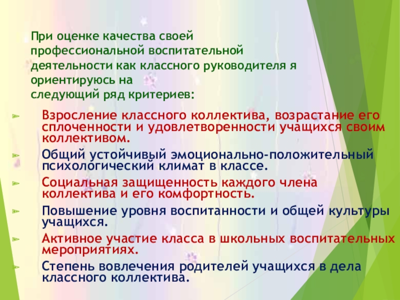 Слайд 16При оценке качества своей профессиональной воспитательной деятельности как классного руководителя я