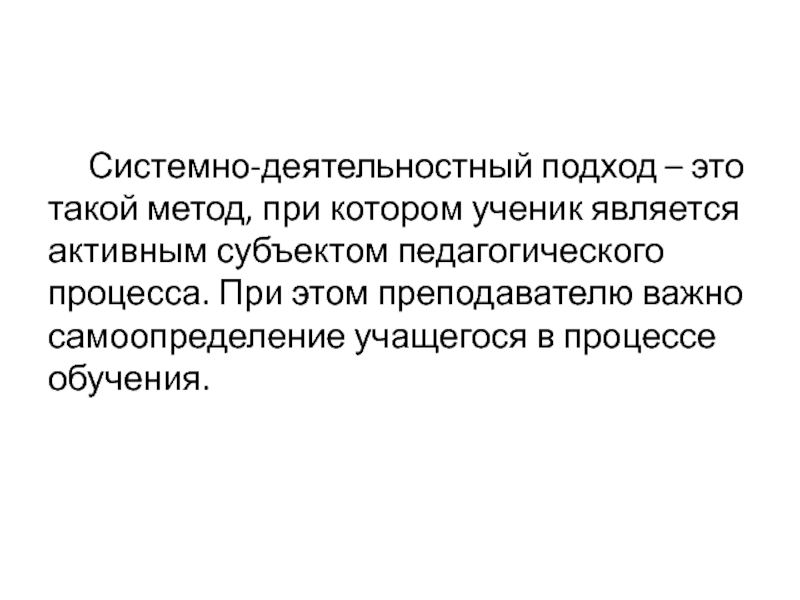 Слайд 2 Системно-деятельностный подход – это такой метод, при котором ученик является активным