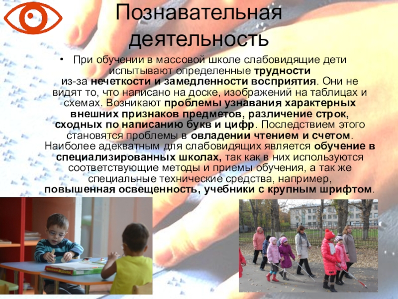 При обучении в массовой школе слабовидящие дети испытывают определенные трудности