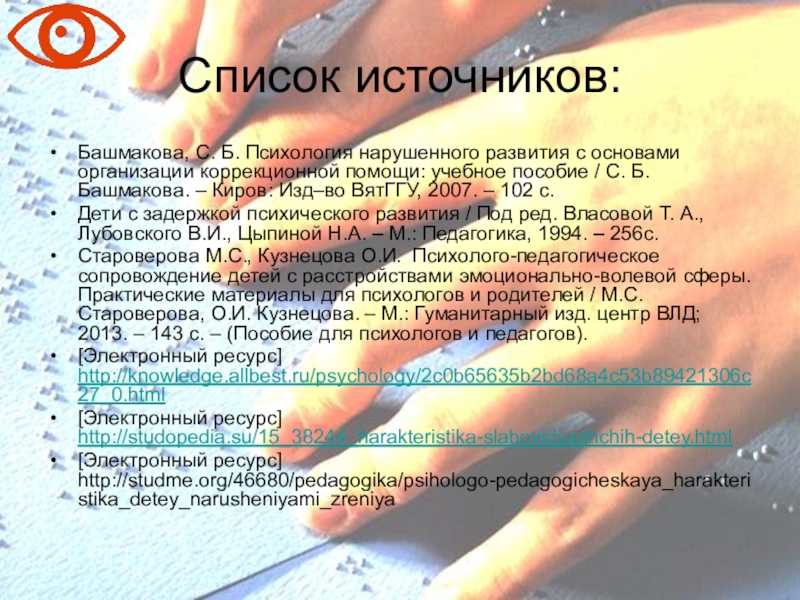[Электронный ресурс] http://studme.org/46680/pedagogika/psihologo-pedagogicheskaya_harakteristika_detey_narusheniyami_zreniya