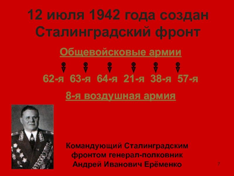 Командующий Сталинградским фронтом генерал-полковник Андрей Иванович Ерёменко