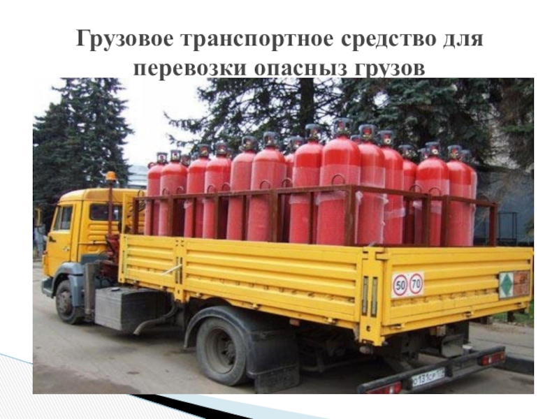 Слайд 7Грузовое транспортное средство для перевозки опасныз грузов