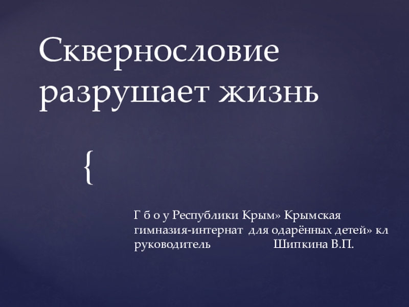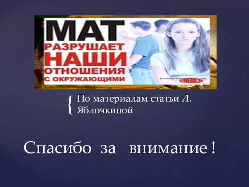 лет назад В. И.Даль записал в свой знаменитый словарь поговорку:»Слово не обух, а от него люди гибнут». Сегодня матом разговаривают школьники, молодые люди, взрослые мужчины и женщины. Мат доносится с экранов телевизоров. ТАК УЖ БЕЗОБИДНА ЭТА ВРЕДНАЯ ПРИВЫЧКА?