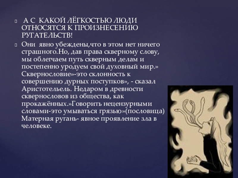 Слайд 13 А С КАКОЙ ЛЁГКОСТЬЮ ЛЮДИ ОТНОСЯТСЯ К ПРОИЗНЕСЕНИЮ РУГАТЕЛЬСТВ!
