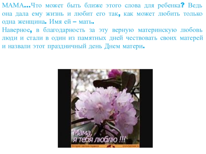 Слайд 8МАМА…Что может быть ближе этого слова для ребенка? Ведь она дала
