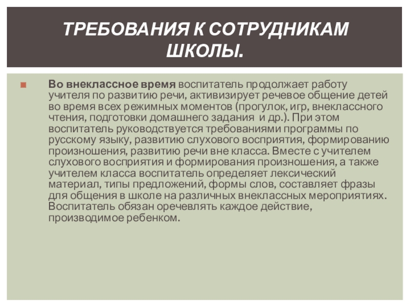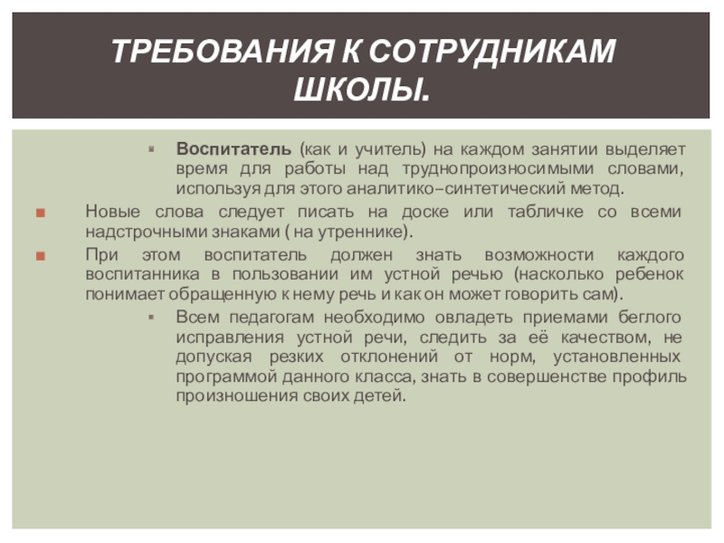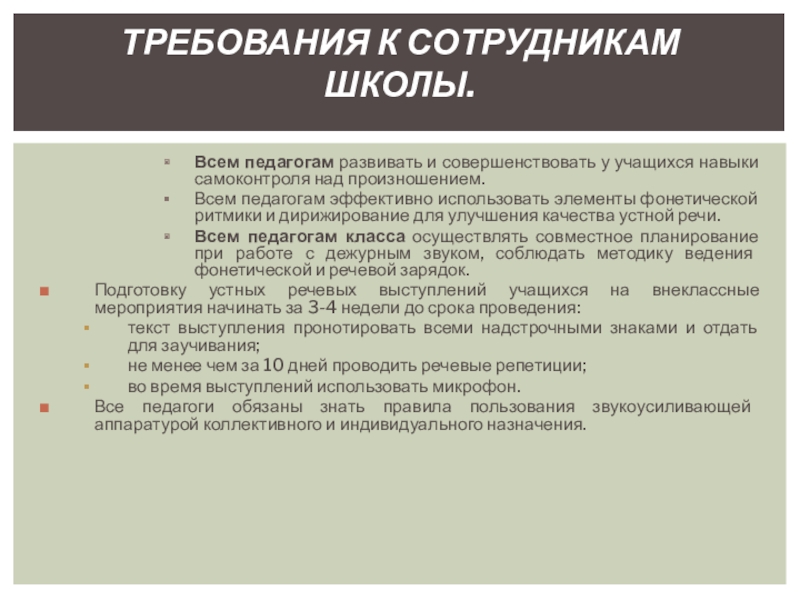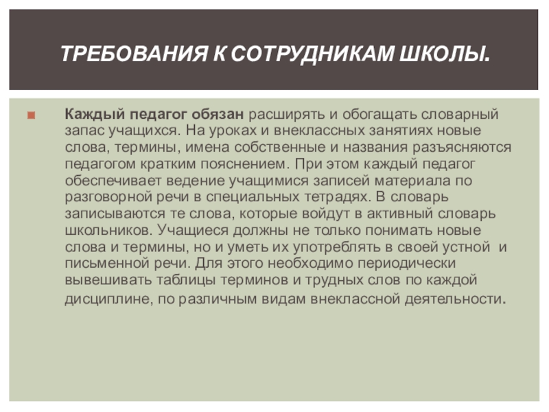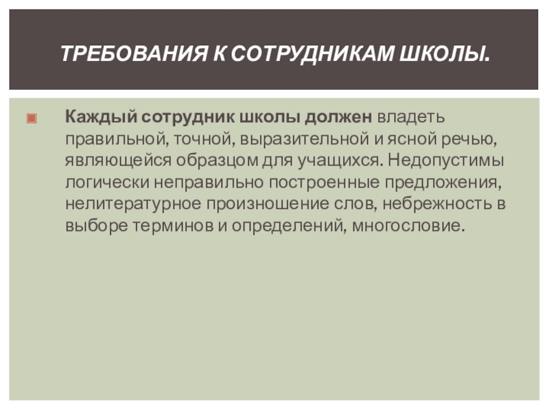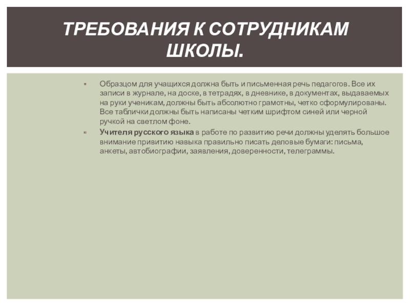 ТРЕБОВАНИЯ К СОТРУДНИКАМ ШКОЛЫ.