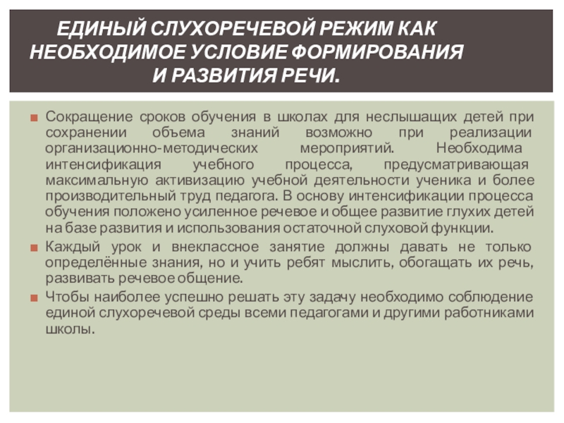 ЕДИНЫЙ СЛУХОРЕЧЕВОЙ РЕЖИМ КАК НЕОБХОДИМОЕ УСЛОВИЕ ФОРМИРОВАНИЯ И РАЗВИТИЯ РЕЧИ.