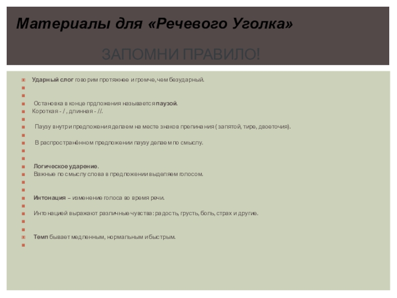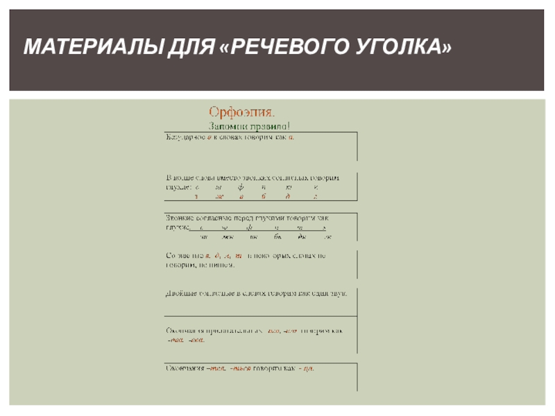 МАТЕРИАЛЫ ДЛЯ «РЕЧЕВОГО УГОЛКА»