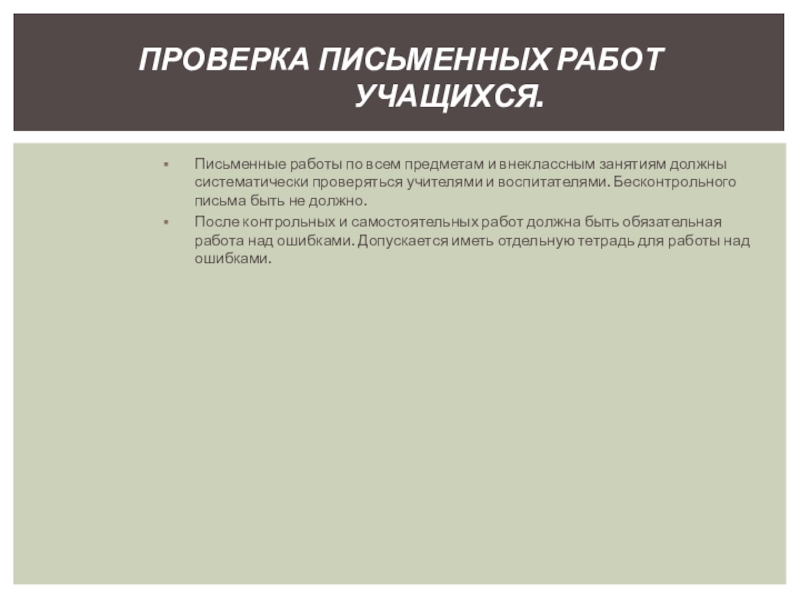 ПРОВЕРКА ПИСЬМЕННЫХ РАБОТ УЧАЩИХСЯ.