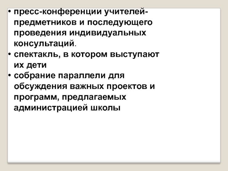 Слайд 9пресс-конференции учителей-предметников и последующего проведения индивидуальных консультаций.