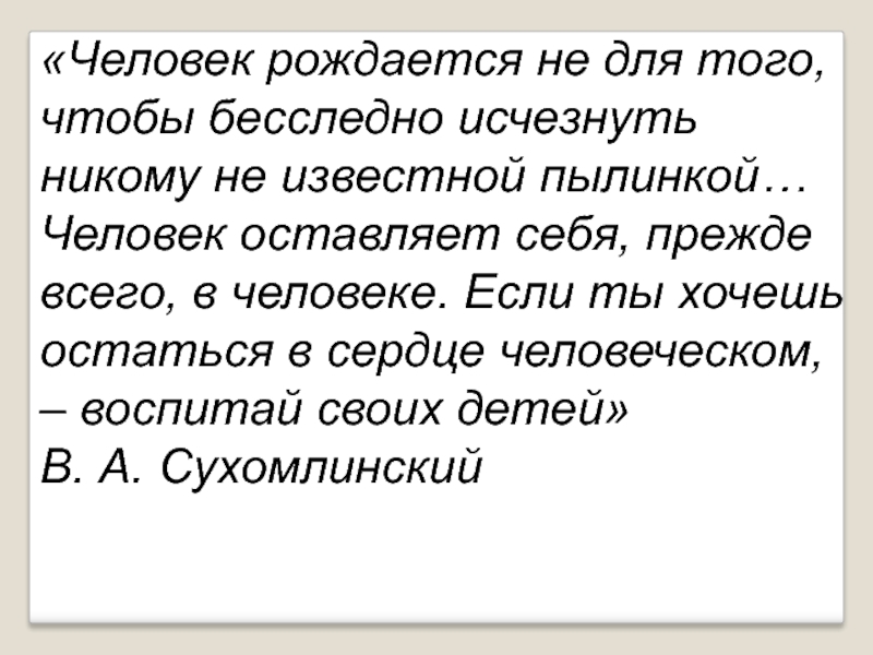 Слайд 15«Человек рождается не для того, чтобы бесследно исчезнуть никому не известной