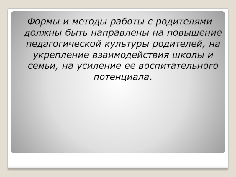 Формы и методы работы с родителями должны быть направлены на повышение педагогической