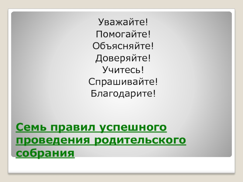 Слайд 10Семь правил успешного проведения родительского собрания