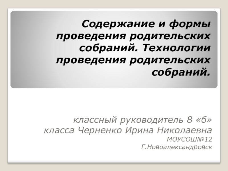 Слайд 1Содержание и формы проведения родительских собраний. Технологии проведения родительских собраний.