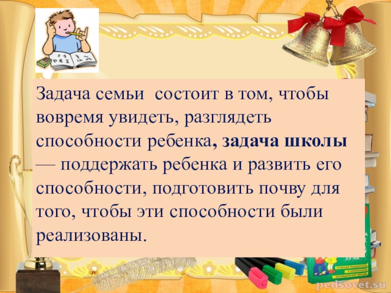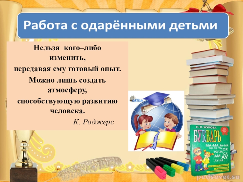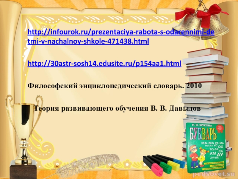 Это сайт презентаций, где можно хранить и обмениваться своими презентациями, докладами, проектами, шаблонами в формате PowerPoint с другими пользователями. Мы помогаем школьникам, студентам, учителям, преподавателям хранить и обмениваться учебными материалами.