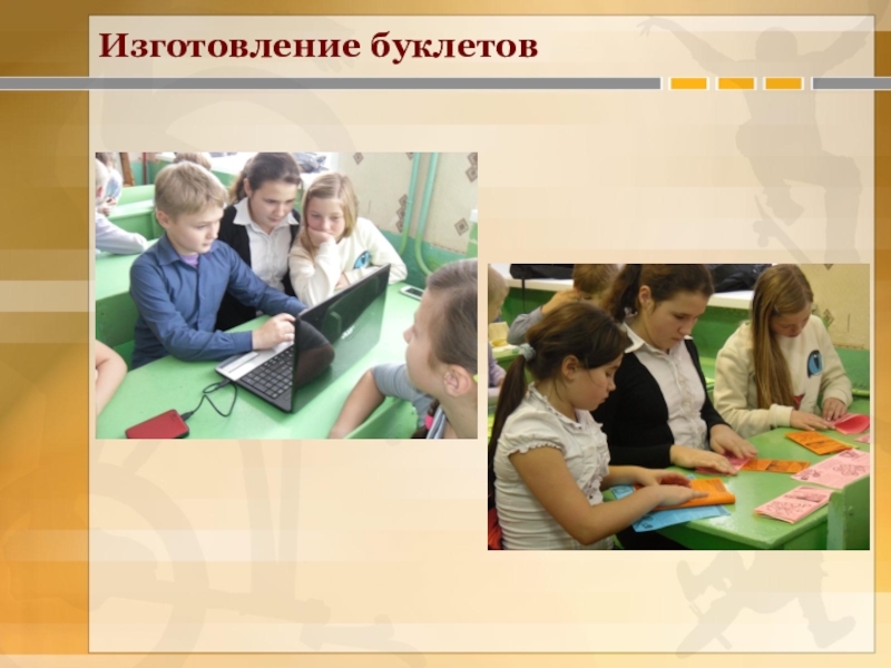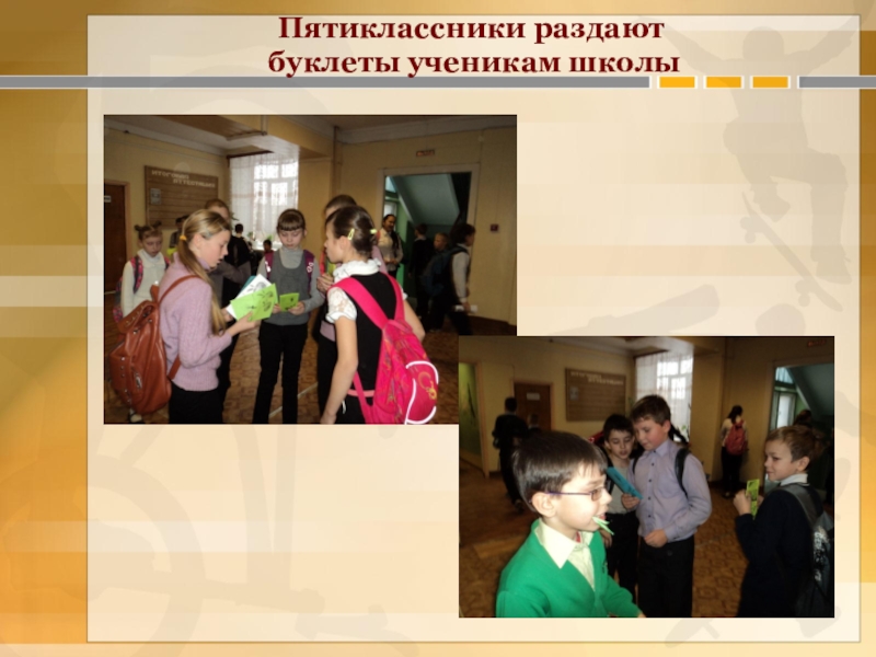 Слайд 15Пятиклассники раздают буклеты ученикам школы