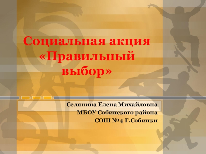 Социальная акция «Правильный выбор»Селянина Елена МихайловнаМБОУ Собинского района СОШ №4 Г.Собинки