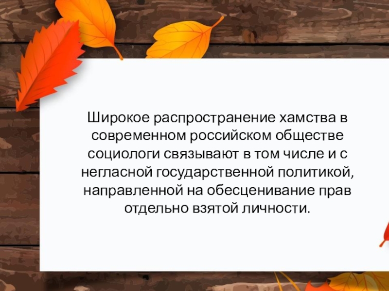 Слайд 12Широкое распространение хамства в современном российском обществе социологи связывают в том