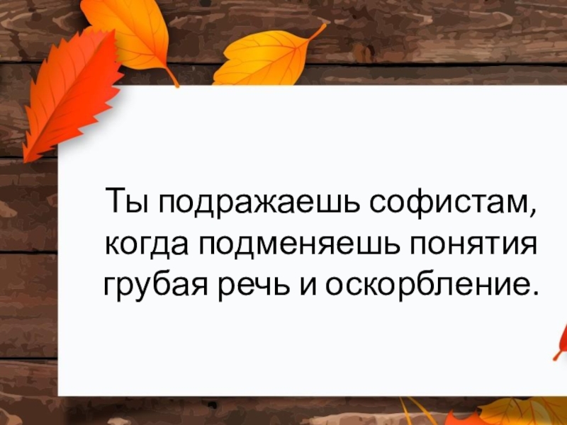 Слайд 3Ты подражаешь софистам, когда подменяешь понятия грубая речь и оскорбление.