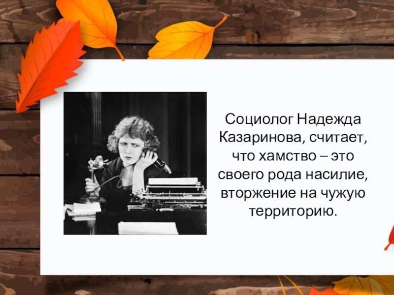 Слайд 10Социолог Надежда Казаринова, считает, что хамство – это своего рода насилие,