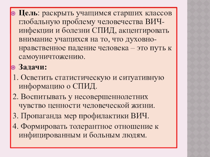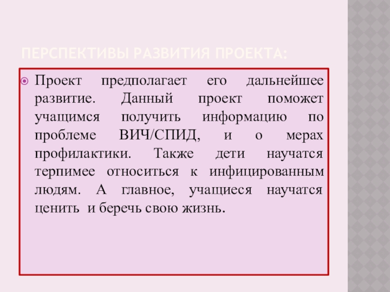 Название проекта: «Остановим СПИД. Мы выбираем жизнь!»