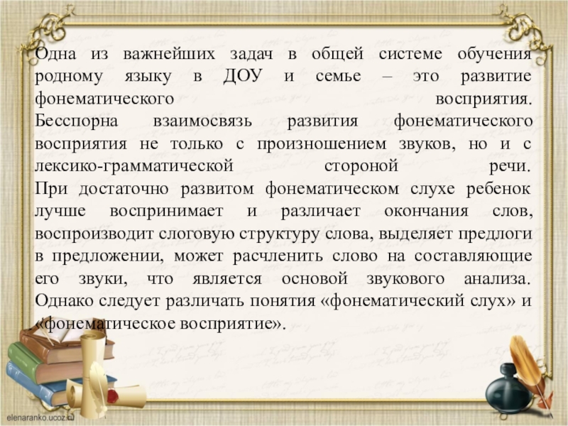 Однако следует различать понятия «фонематический слух» и «фонематическое восприятие».