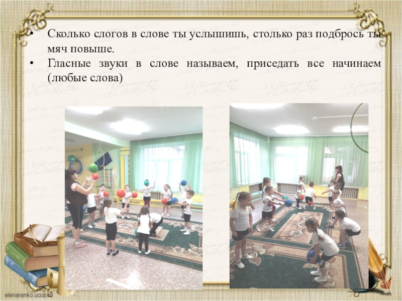 Ход игр. Сколько гласных звуков в слове (кошка) столько раз попрыгай на правой(левой) ножке.