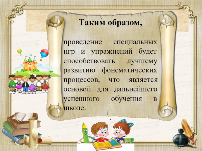 фонематических процессов, что является основой для дальнейшего успешного обучения в школе.