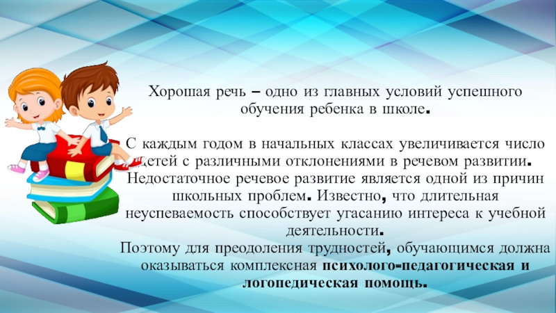 Поэтому для преодоления трудностей, обучающимся должна оказываться комплексная психолого-педагогическая и логопедическая помощь.