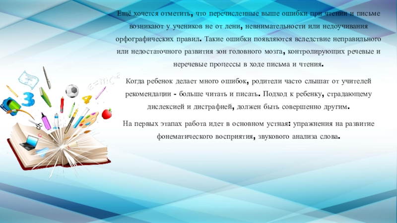 Слайд 14Ещё хочется отметить, что перечисленные выше ошибки при чтении и письме