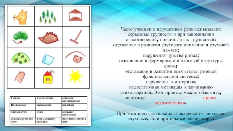 Часто ученики с нарушением речи испытывают серьезные трудности и при запоминании