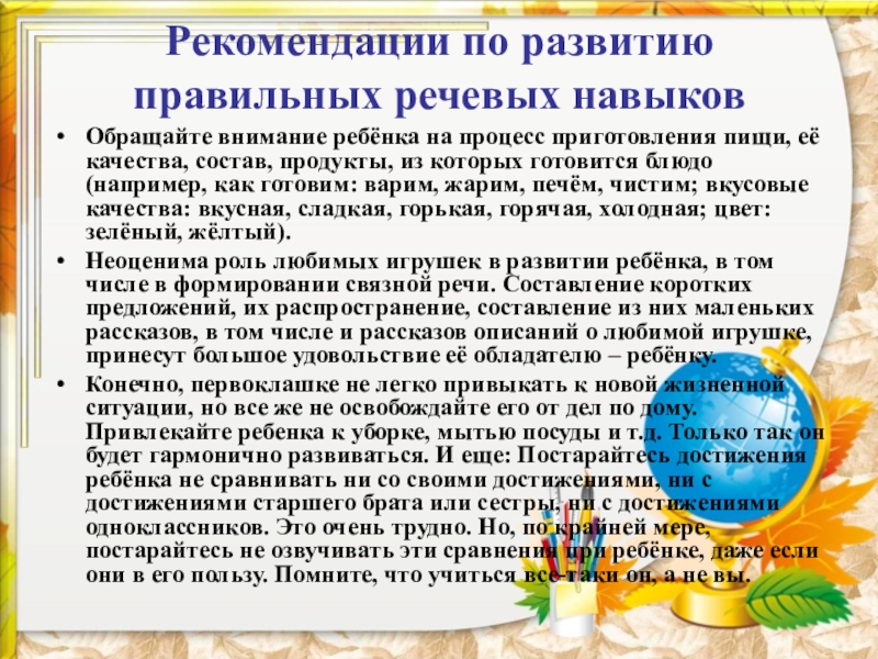 Слайд 13Рекомендации по развитию правильных речевых навыков