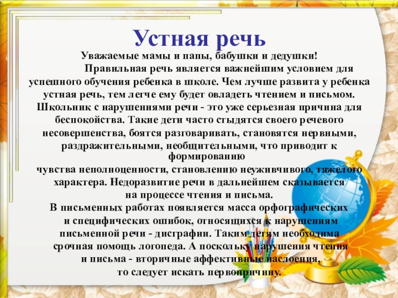 Советы логопеда родителям первоклассников