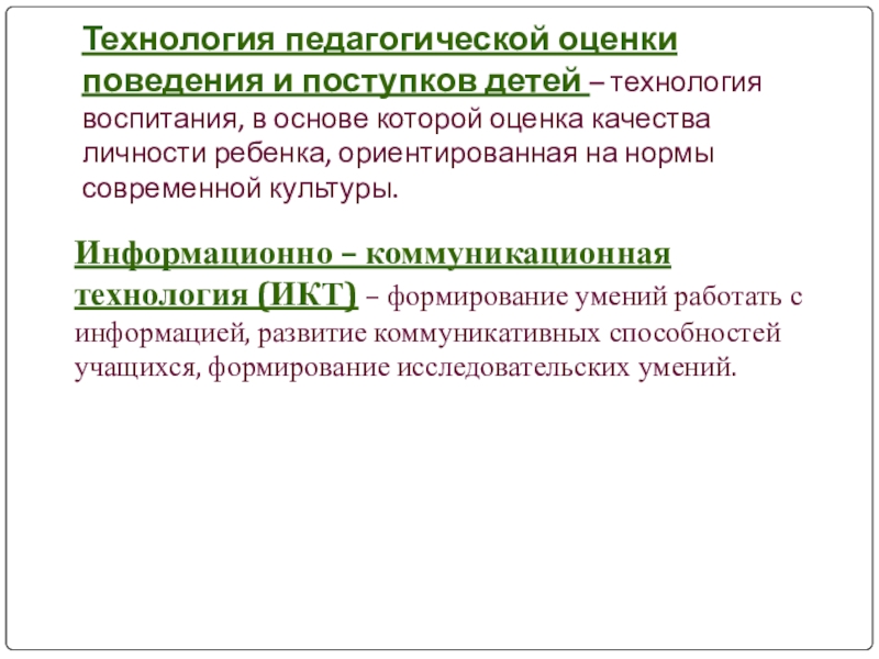 Информационно – коммуникационная технология (ИКТ) – формирование умений работать с информацией, развитие коммуникативных способностей учащихся, формирование исследовательских умений.
