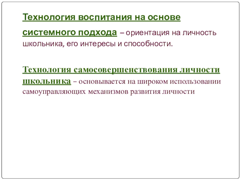 Технология самосовершенствования личности школьника – основывается на широком использовании самоуправляющих механизмов развития личности