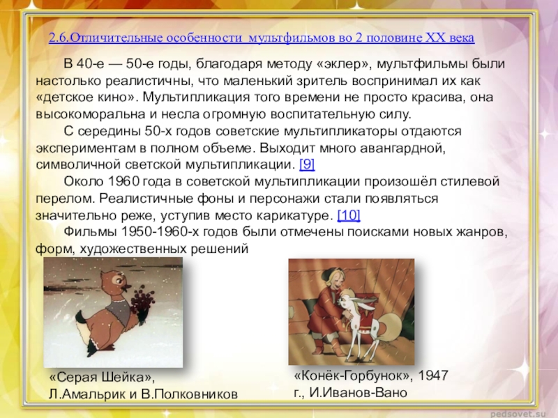 2.6.Отличительные особенности мультфильмов во 2 половине ХХ века