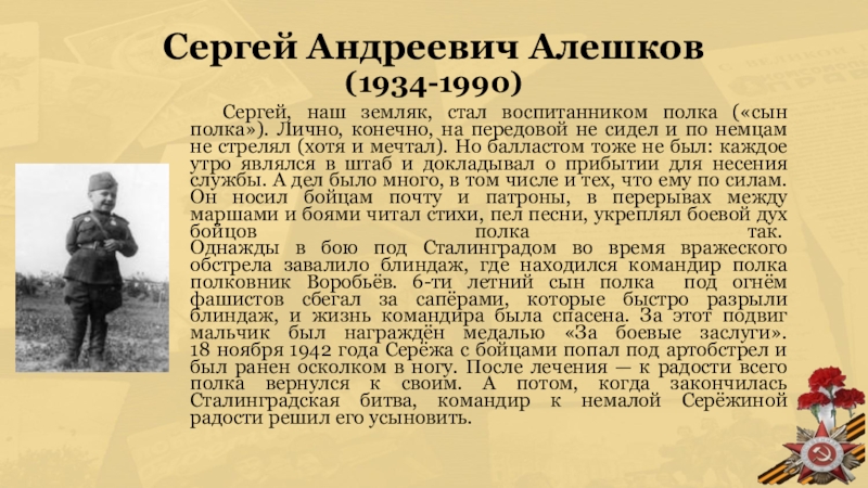 Невысокого роста, он выглядел совсем мальчишкой в длинной солдатской шинели. Получив разрешение командира, Сердюков под градом пуль пополз к третьему доту. Бросил одну, вторую гранаты, но те не достигли цели. На виду у гвардейцев, поднявшись во весь рост, бросился герой к амбразуре дота. Пулемет врага замолчал, гвардейцы устремились на врага.