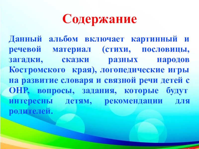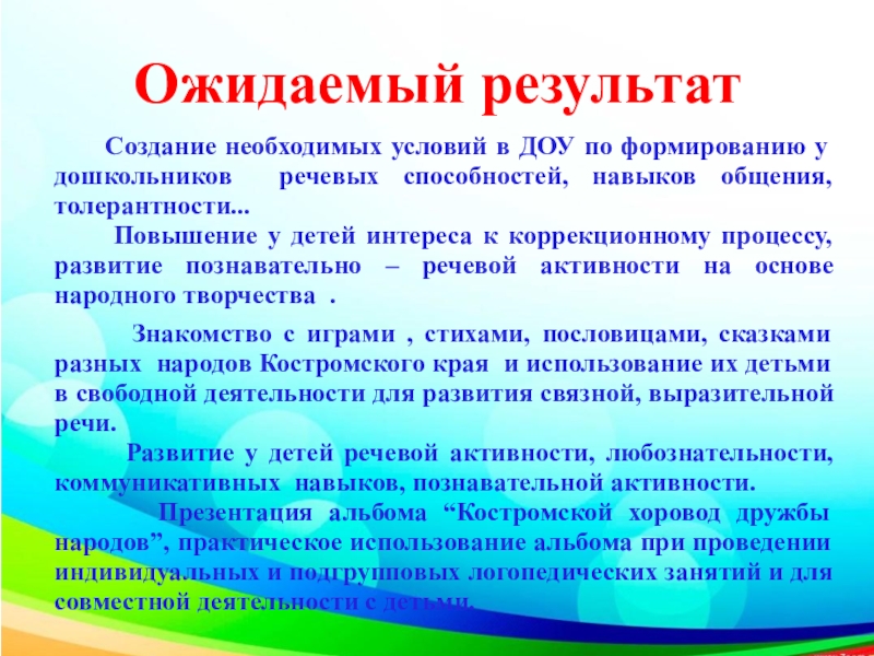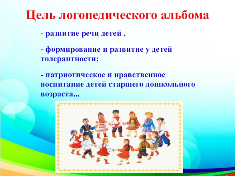Презентация альбома “Костромской хоровод дружбы народов”, практическое использование альбома при проведении индивидуальных и подгрупповых логопедических занятий и для совместной деятельности с детьми.