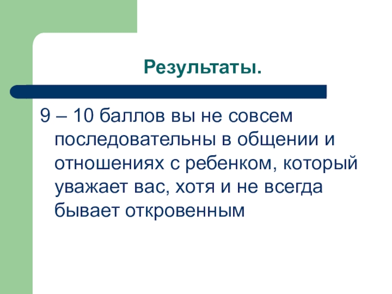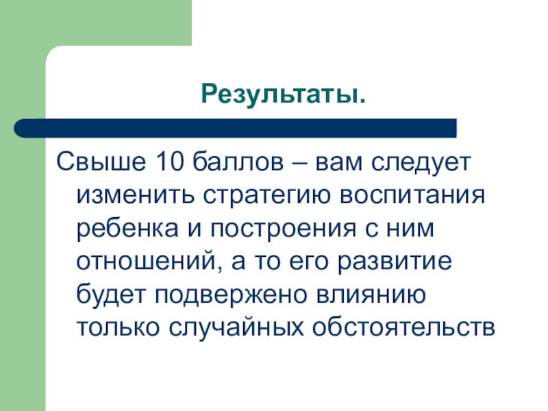 Слайд 7Свыше 10 баллов – вам следует изменить стратегию воспитания ребенка и