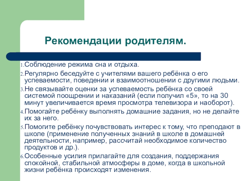 Не связывайте оценки за успеваемость ребёнка со своей системой поощрении и наказаний (если получил «5», то на 30 минут увеличивается время просмотра телевизора и наоборот).
