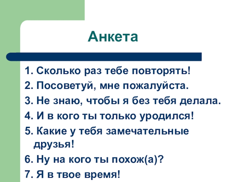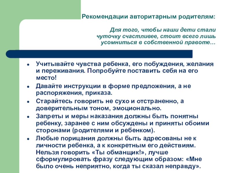 минуту», «только попробуй…», «не смей…» «как я сказал, так и будет», «я родитель, значит я прав».